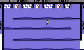 Este juego es uno de los mejores en mi Top Ten personal y es un claro ejemplo de aquellos juegos de plataformas tan característicos al principio de la era de los 8 bits. Eran "baratos" en recursos, tenian poca nitides (puntos como puños) pero daba lo mismo, porque eran adictivos como ellos solos. En mi caso lo conseguí en un Vips por 195 pesetas (año 1987), aunque debió valer bastante más cuando apareció en 1984 (supongo que 2125, como los demás). Y ya se sabe, que lo bueno si barato ...